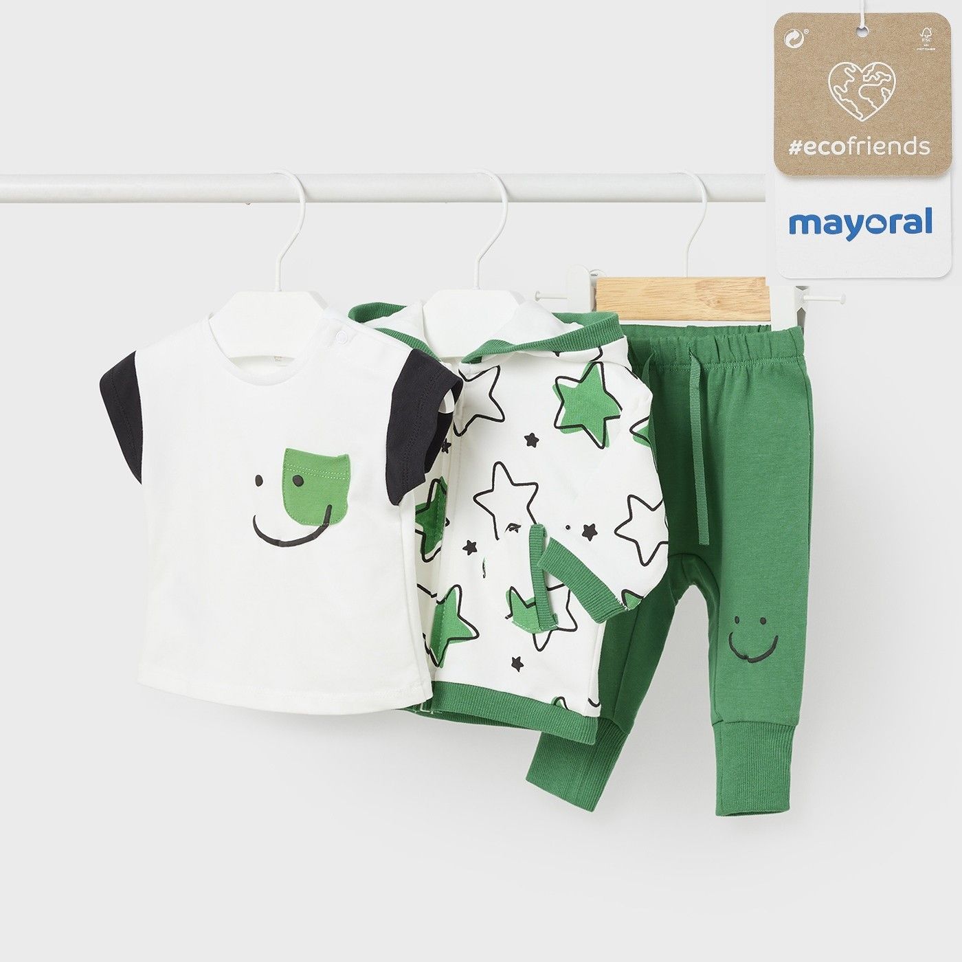Conjunto 3 piezas bebé MAYORAL Ecofriends con estampado estrellas