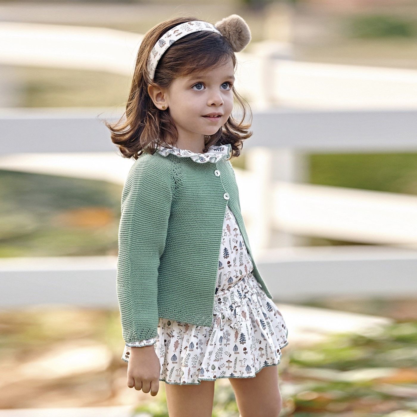 Conjunto 3 piezas de niña JULIANA de falda ranita con blusa estampada y chaqueta