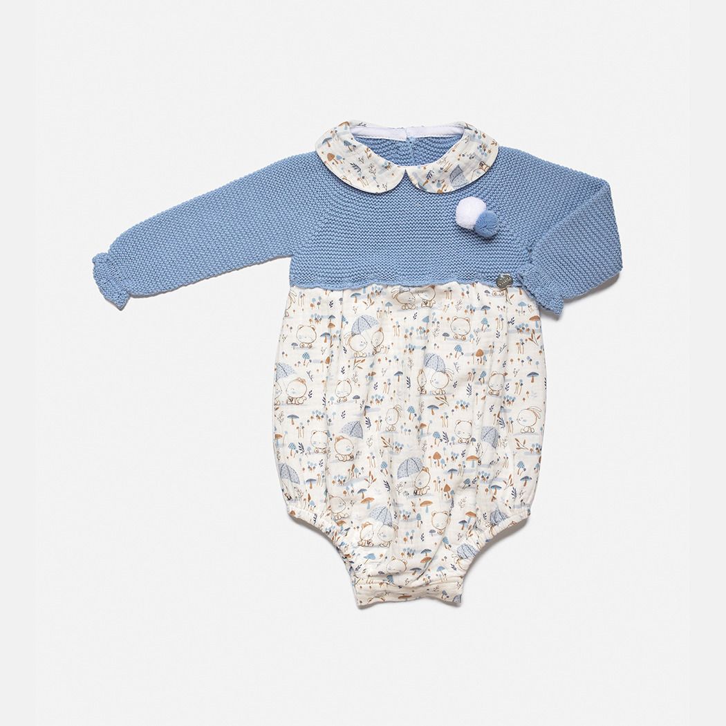 Pelele corto estampado de bebé JULIANA de punto y tela con cuello bebé