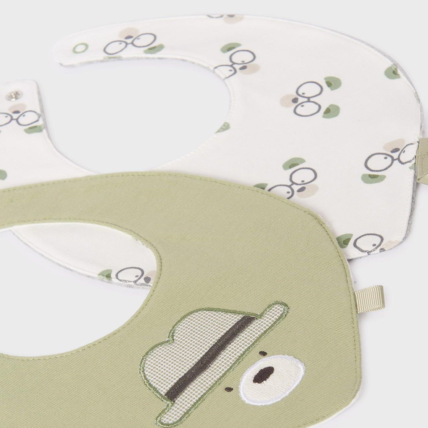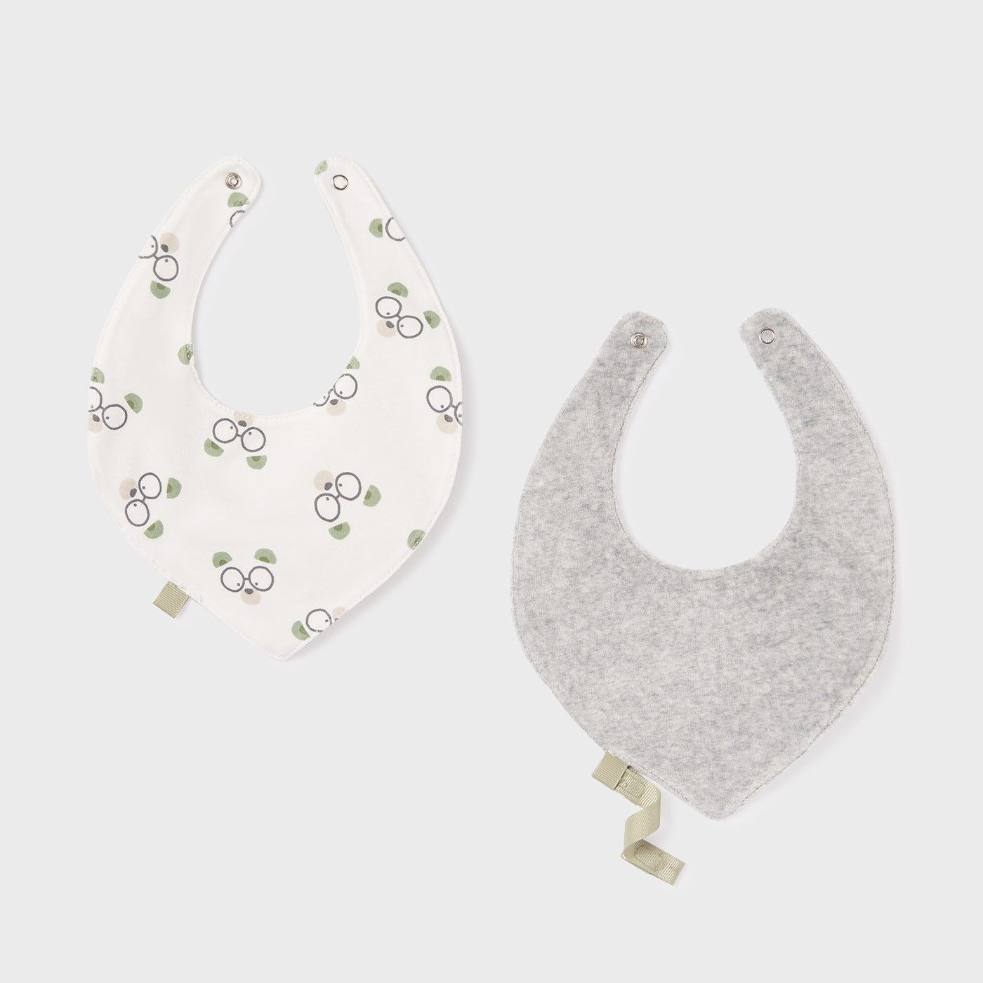 Set de 2 baberos recién nacido MAYORAL Ecofriends estampados con cuelga chupete