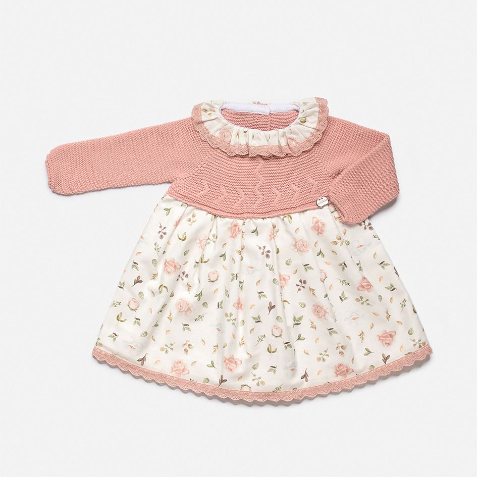Vestido estampado de niña JULIANA de punto y tela con cuello volante